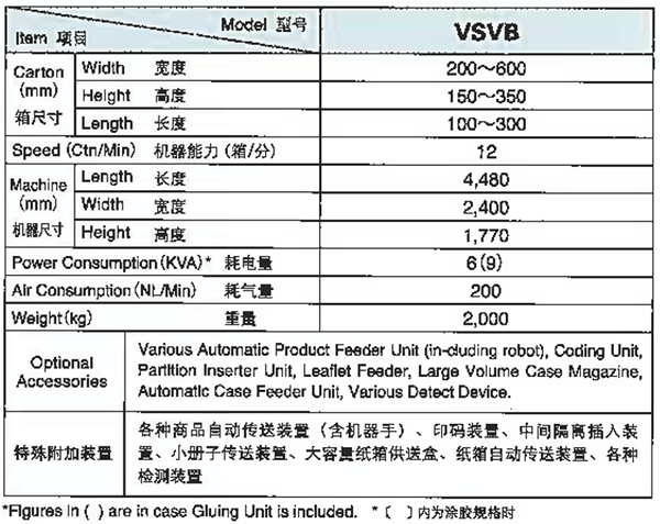 由一臺機器完成紙箱成型和商品自動裝箱作業的全自動硬紙箱通用組合配裝包裝機。紙箱為縱向開口,商品從上方裝箱。標準裝配快速轉換裝置,可便捷地變更包裝程序。